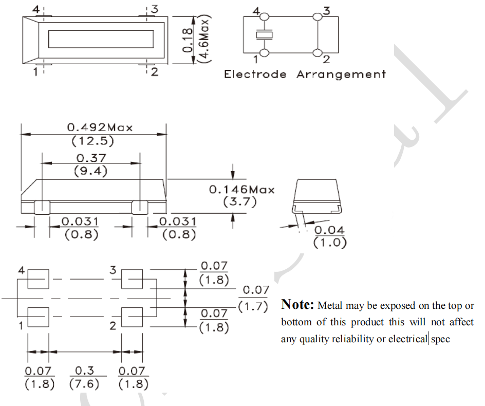 典型的12.5×4.6×3.8毫米玻璃密封SMD晶體,符合ROHS的無鉛鉛焊接