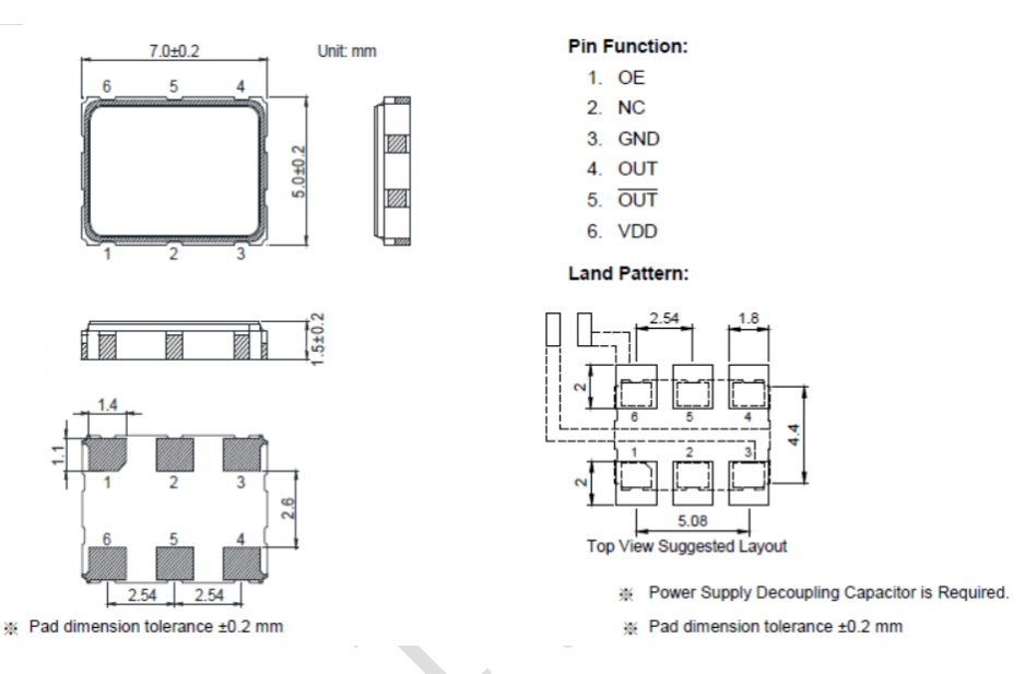 SMD晶體振蕩器POSC7050J(6件)